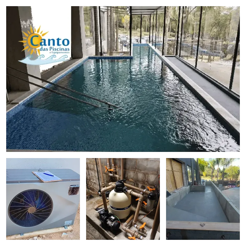 Confira as fotos da instalação de vinil e aquecedor de piscina no bairro de Santo Amaro. O projeto inclui a instalação completa de filtro e motor, garantindo uma piscina moderna e funcional.